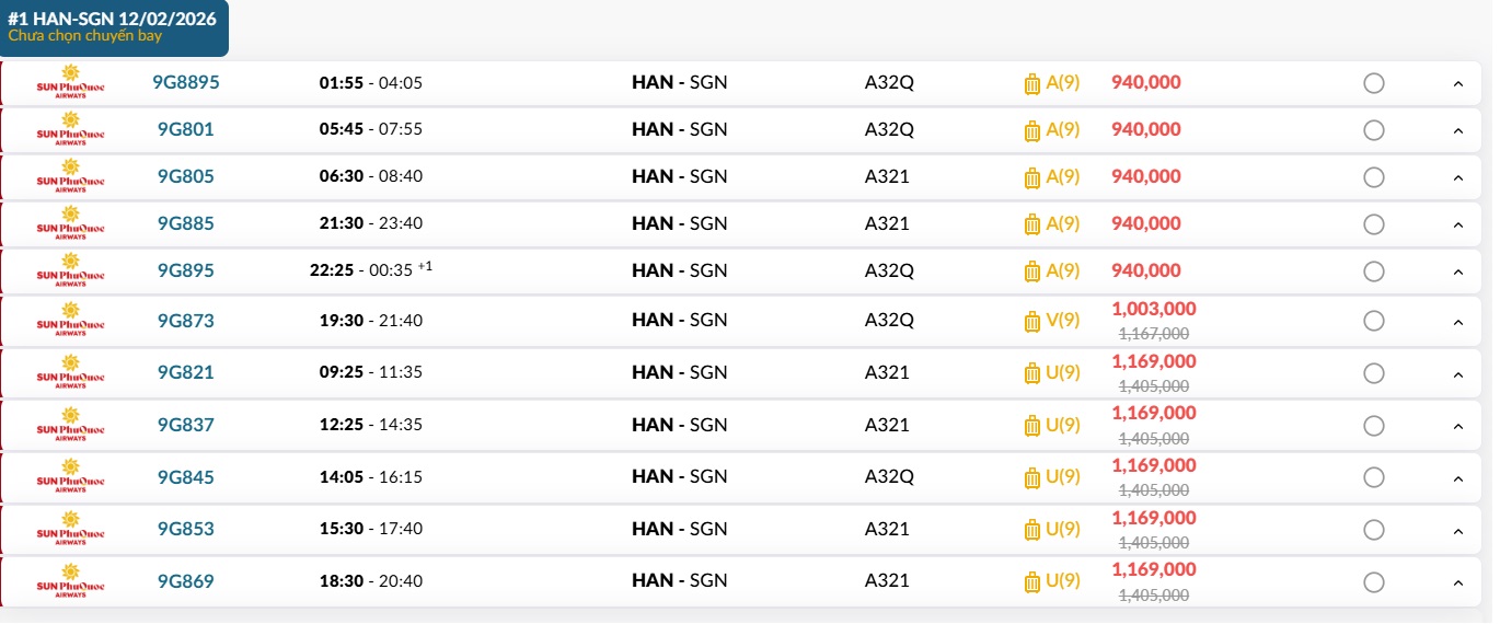 Hà Nội - Chu Lai 10/02/2026 ÂL 23/12/2025