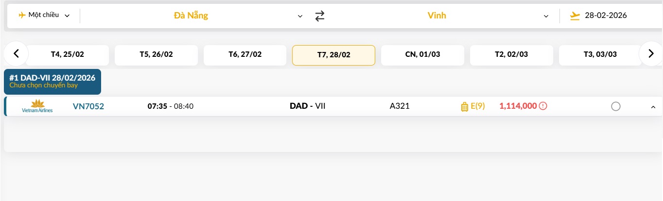 Đà Nẵng (DAD) - Vinh (VII) Thứ bảy 28/02/2026