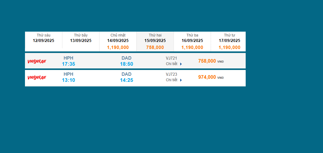 Cát Bi (HPH) - Đà Nẵng (DAD) 15/09/2025