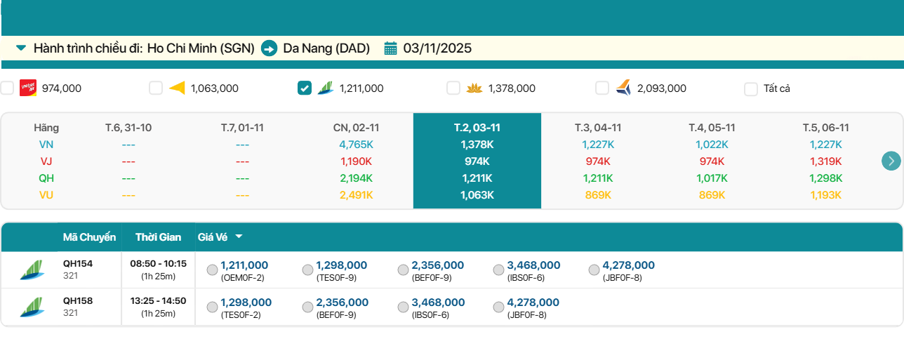 Ho Chi Minh - Da Nang 03/11: