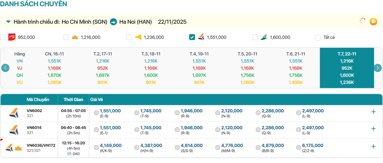 VJ192 17:50-20:00 1,168,000