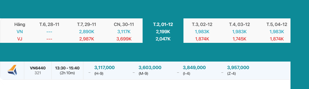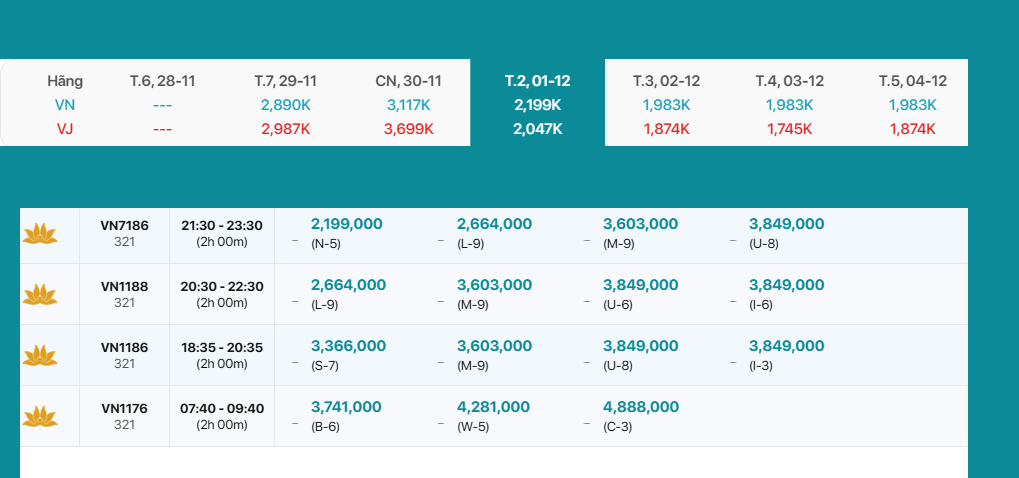 VJ282 20:00-22:00 Vé Máy Bay 2,047,000 VJ284 21:25-23:25 Vé Máy Bay 2,047,000 VN7186 21:30-23:30 Vé Máy Bay 2,199,000 VJ270 06:15-08:15 Vé Máy Bay 2,392,600 VJ272 07:50-09:50 Vé Máy Bay 2,587,000 VJ278 15:55-17:55 Vé Máy Bay 2,587,000 VN1188 20:30-22:30 Vé Máy Bay 2,664,000 VJ274 10:50-12:50 Vé Máy Bay 2,803,000 VN6440 13:30-15:40 Vé Máy Bay 3,117,000 VN1186 18:35-20:35 Vé Máy Bay 3,366,000 VN1176 07:40-09:40 Vé Máy Bay 3,741,000 đã bao gồm phí Liên hệ: 0925642617 - 0964507862 - (0886912037 số này có zalo)
