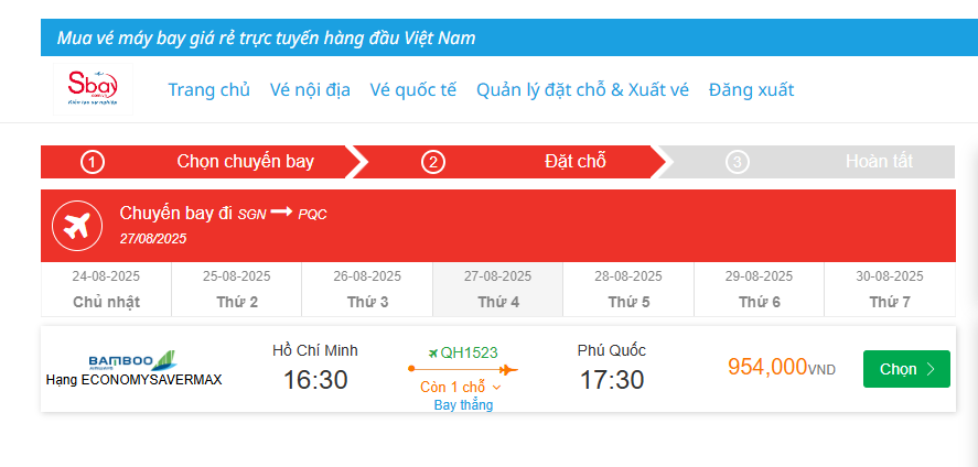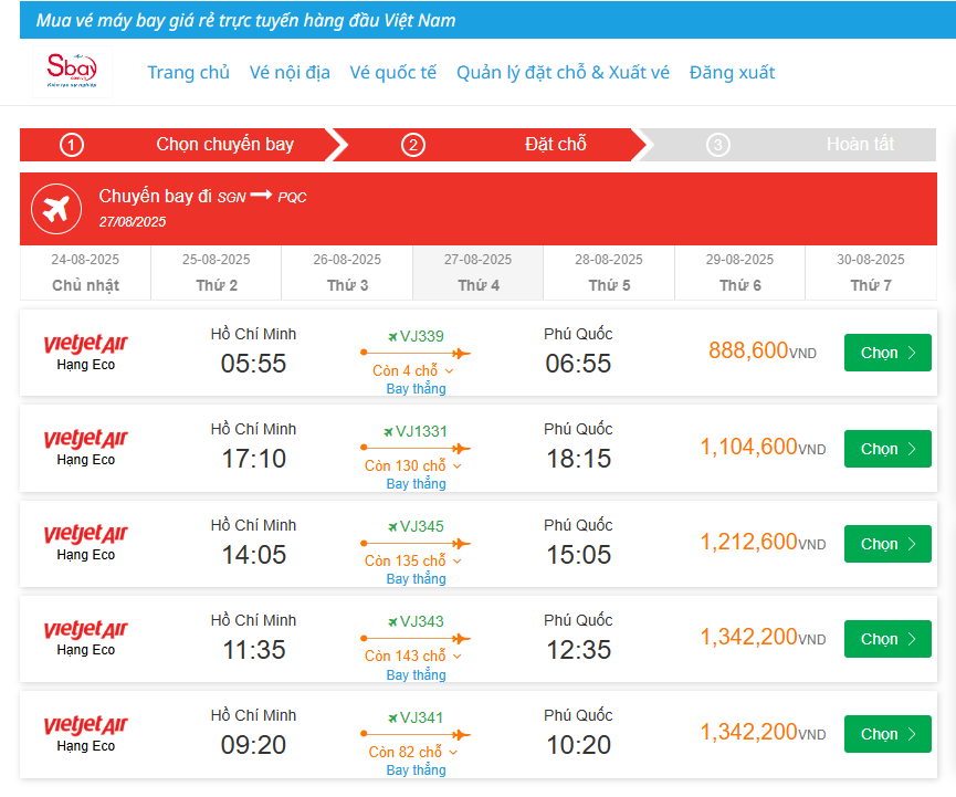 Hồ Chí Minh - Phú Quốc 27/08/2025