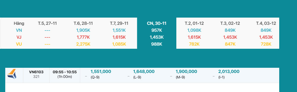 VJ321 05:50-06:50 Vé Máy Bay 1,615,000
