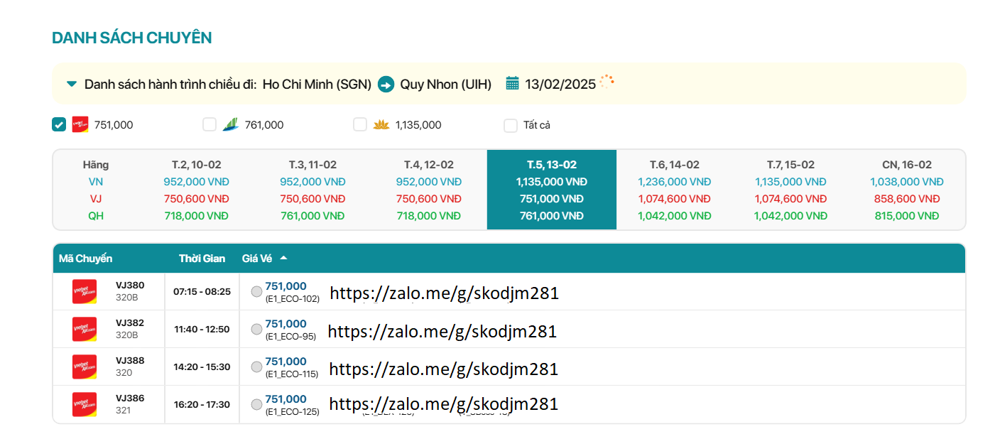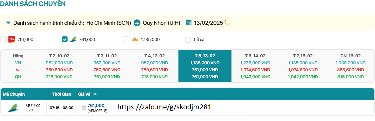 Hồ Chí Minh - Quy Nhơn 13/02/2025