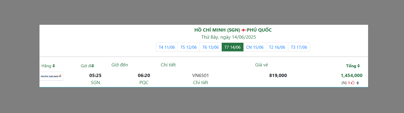 HỒ CHÍ MINH (SGN) PHÚ QUỐC Thứ Bảy, ngày 14/06/2025