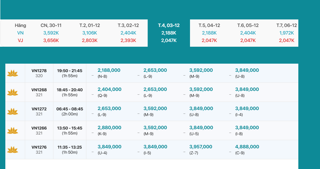 VN1272 06:45-08:45 Vé Máy Bay 2,653,000