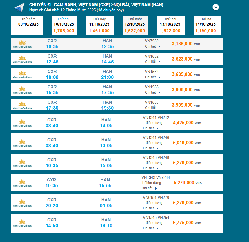 Liên Khương (DLI) - Nội Bài (HAN) 12/10/2025