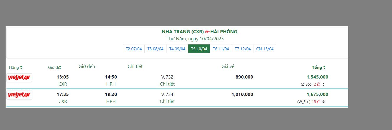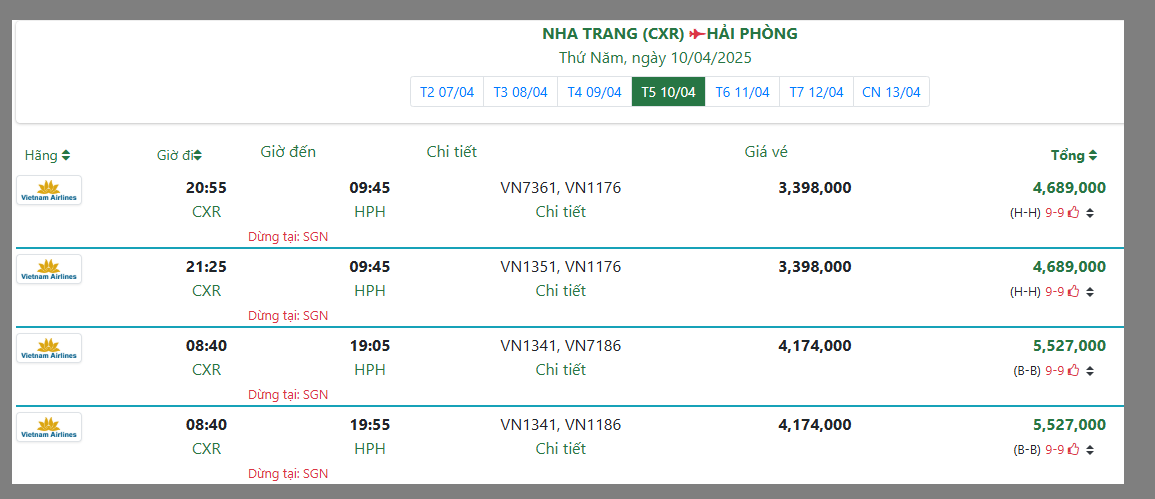 NHA TRANG (CXR) HẢI PHÒNG Thứ Năm, ngày 10/04/2025