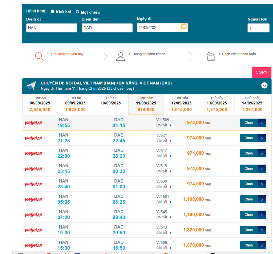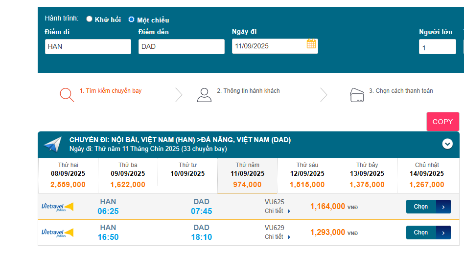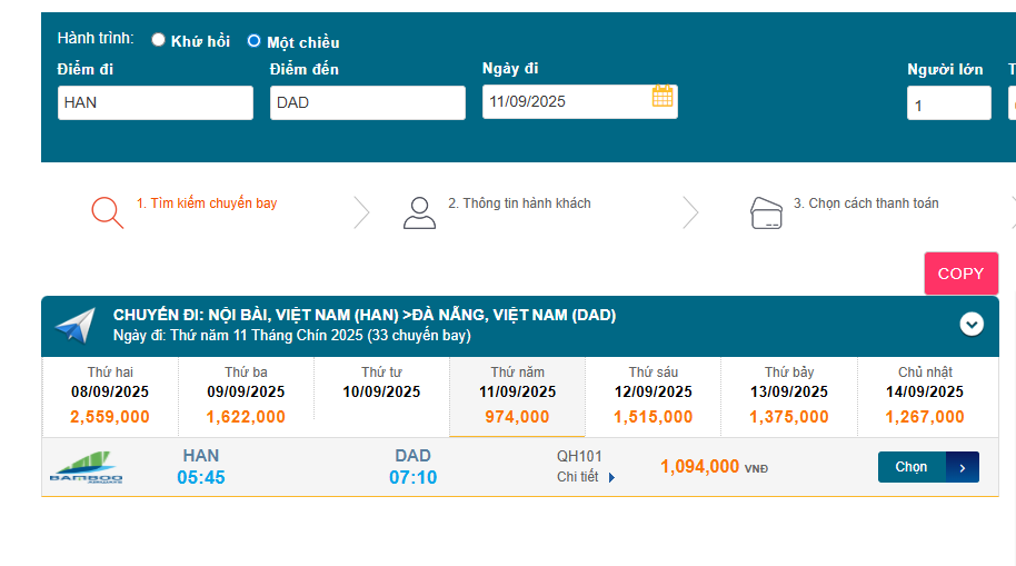 Nội Bài (HAN) - Đà Nẵng (DAD) 11/09/2025