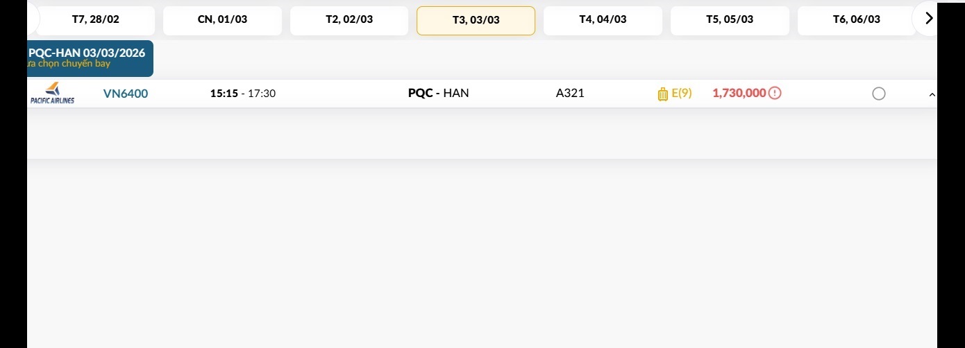 Phú Quốc (PQC) - Hà Nội (HAN) Thứ ba 03/03/2026