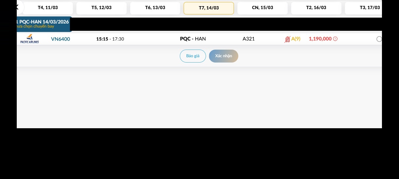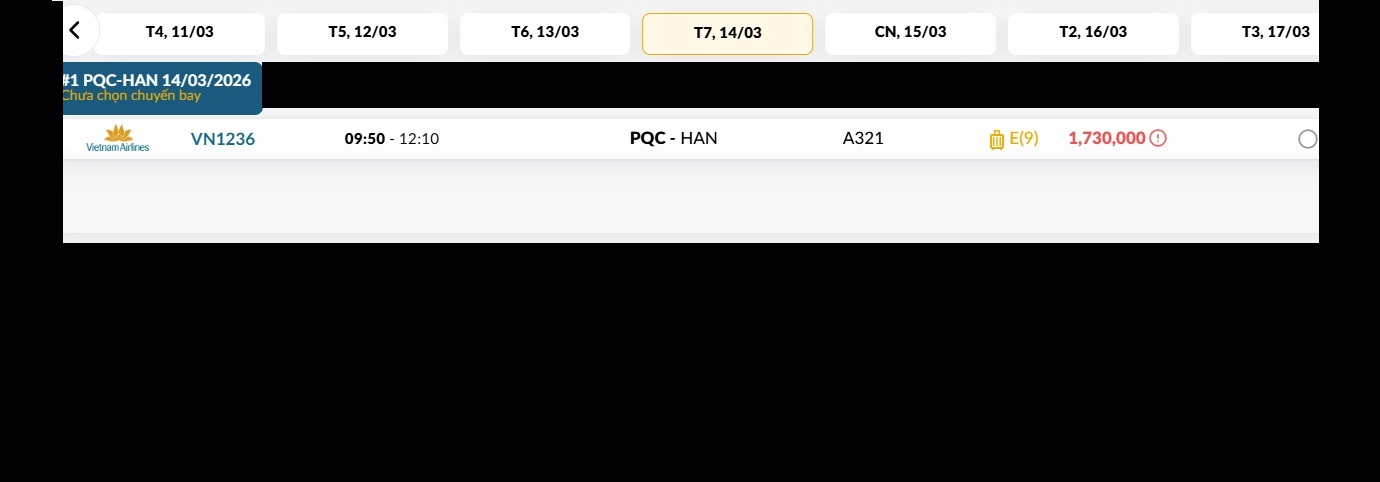 Phú Quốc (PQC) - Hà Nội (HAN) Thứ bảy 14/03/2026