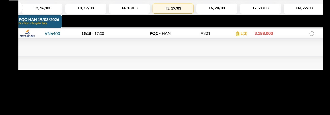 Phú Quốc (PQC) - Hà Nội (HAN) Thứ năm 19/03/2026