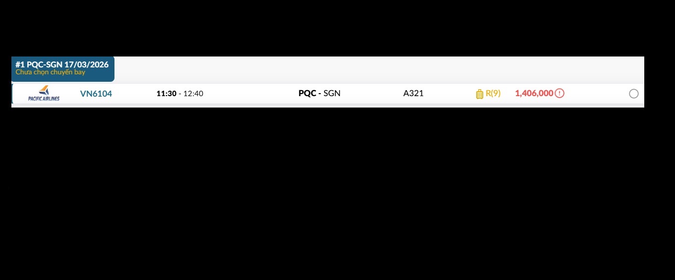 Phú Quốc (PQC) - TP. Hồ Chí Minh (SGN) Thứ ba 17/03/2026