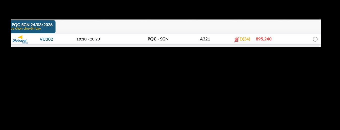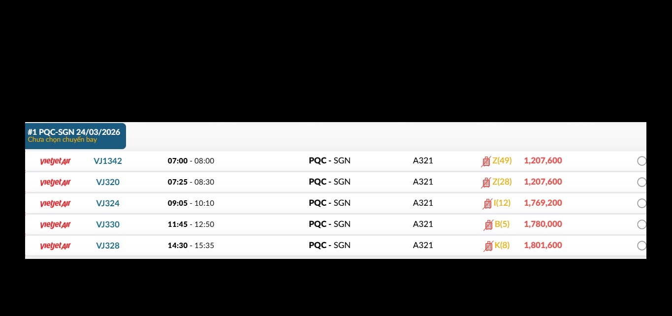 Phú Quốc (PQC) - TP. Hồ Chí Minh (SGN) Thứ ba 24/03/2026