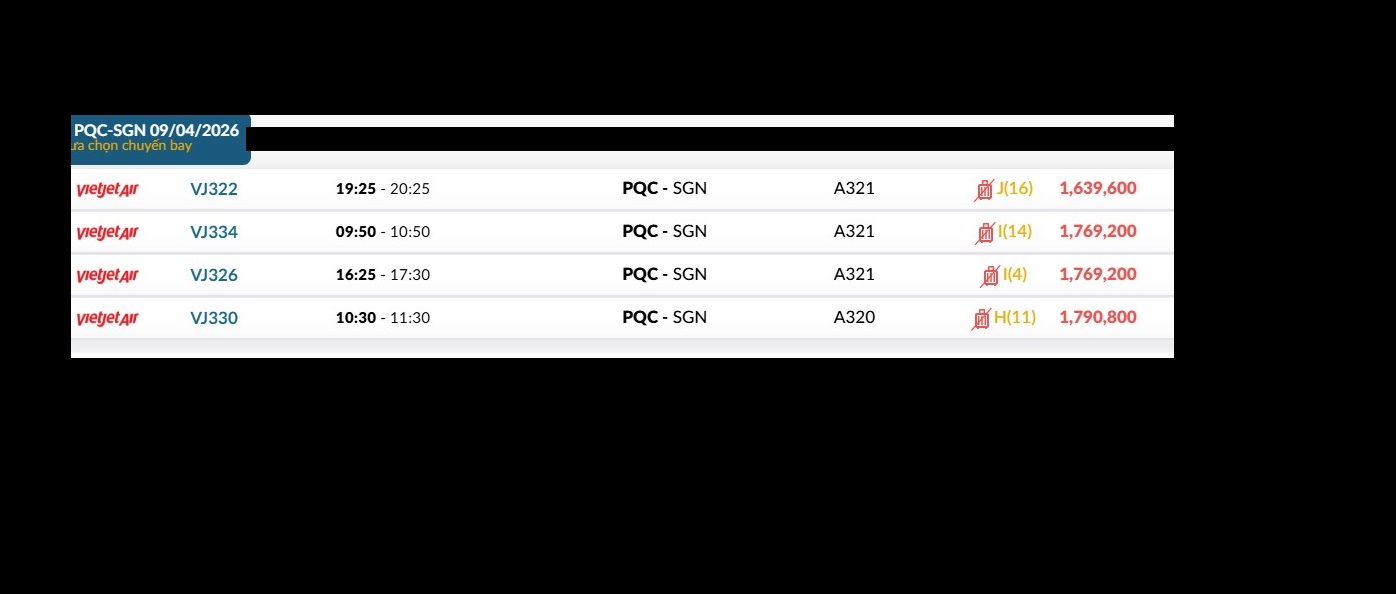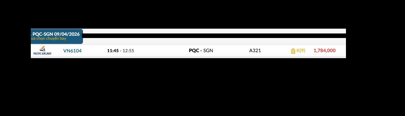 Phú Quốc (PQC) - TP. Hồ Chí Minh (SGN) Thứ năm 09/04/2026