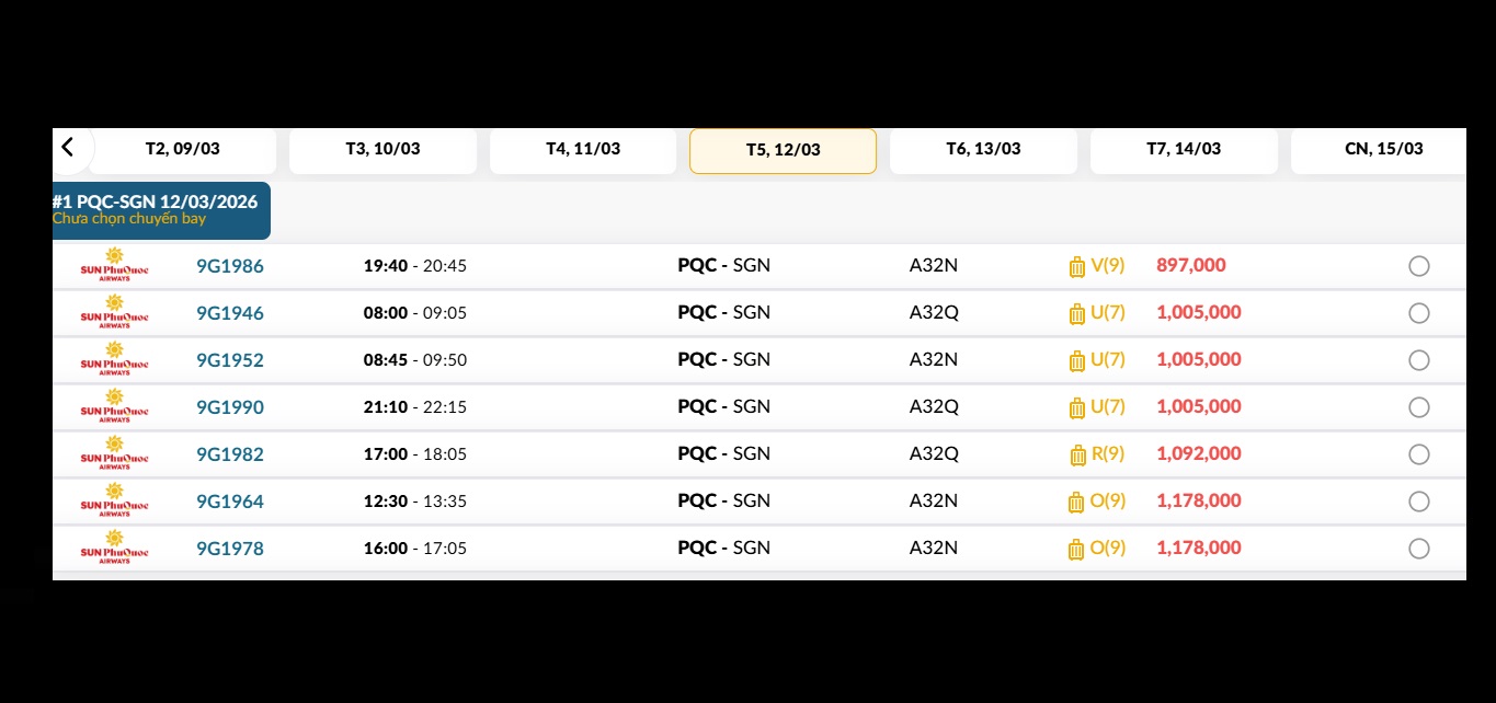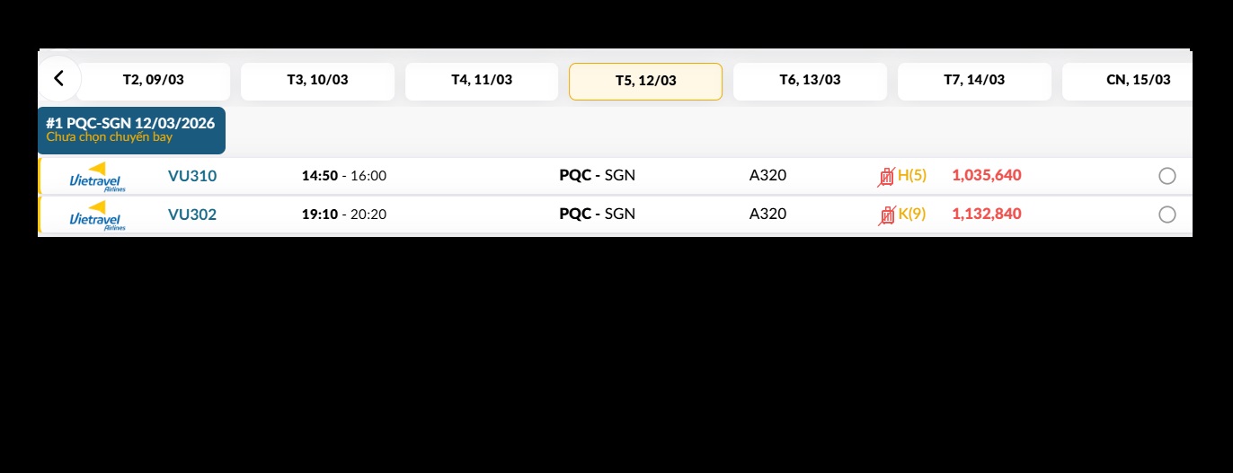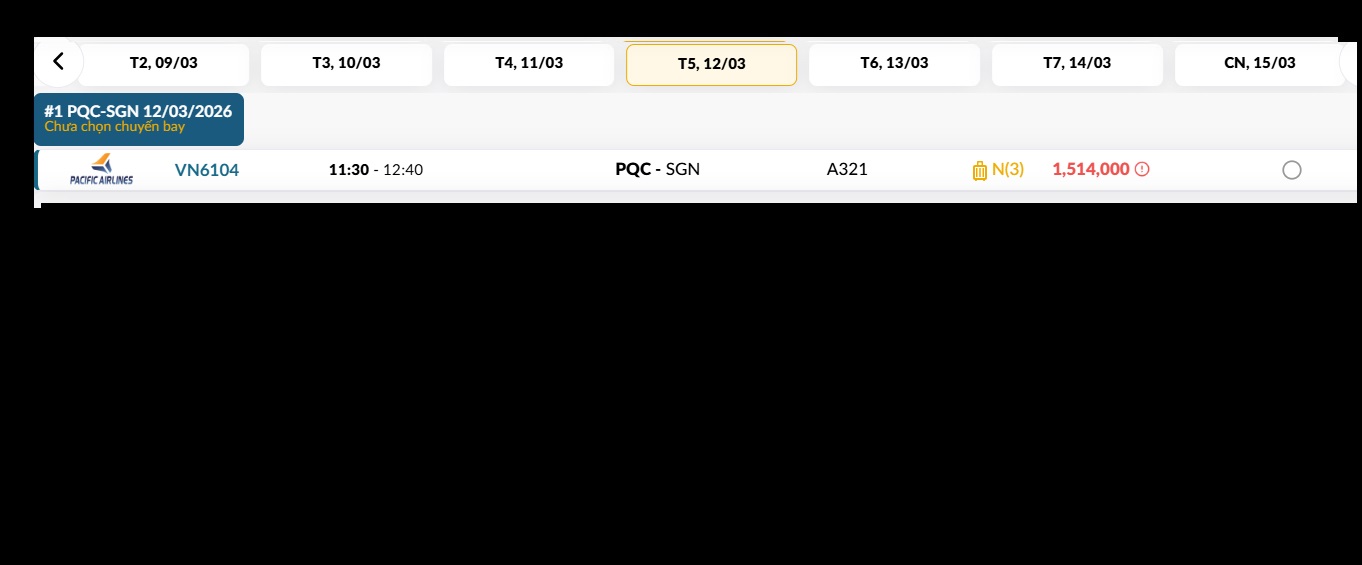 Phú Quốc (PQC) - TP. Hồ Chí Minh (SGN) Thứ năm 12/03/2026