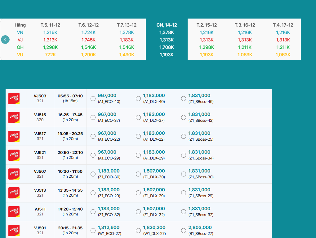 VJ503 05:55-07:10 Vé Máy Bay 967,000
