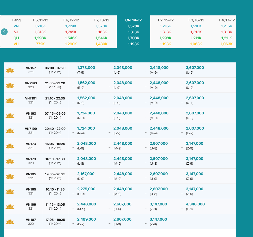 VN157 06:00-07:20 Vé Máy Bay 1,378,000