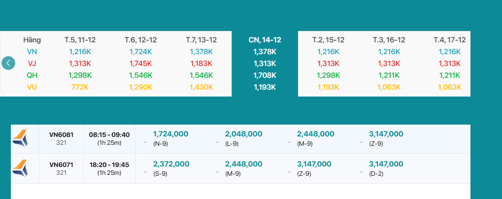 VN6081 08:15-09:40 Vé Máy Bay 1,724,000