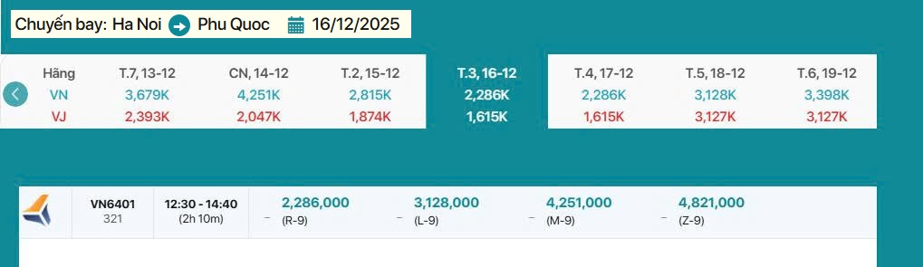 VN6401 12:30-14:40 Vé Máy Bay 2,286,000
