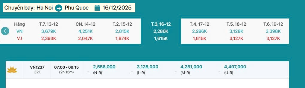 VN1237 07:00-09:15 Vé Máy Bay 2,556,000