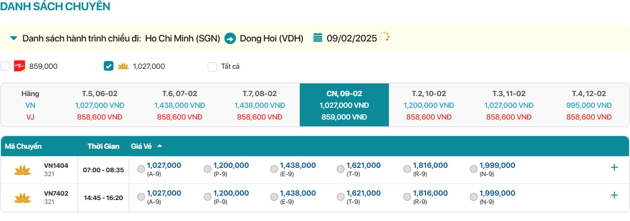 Hồ Chí Minh - Đồng Hới 09/02/2025