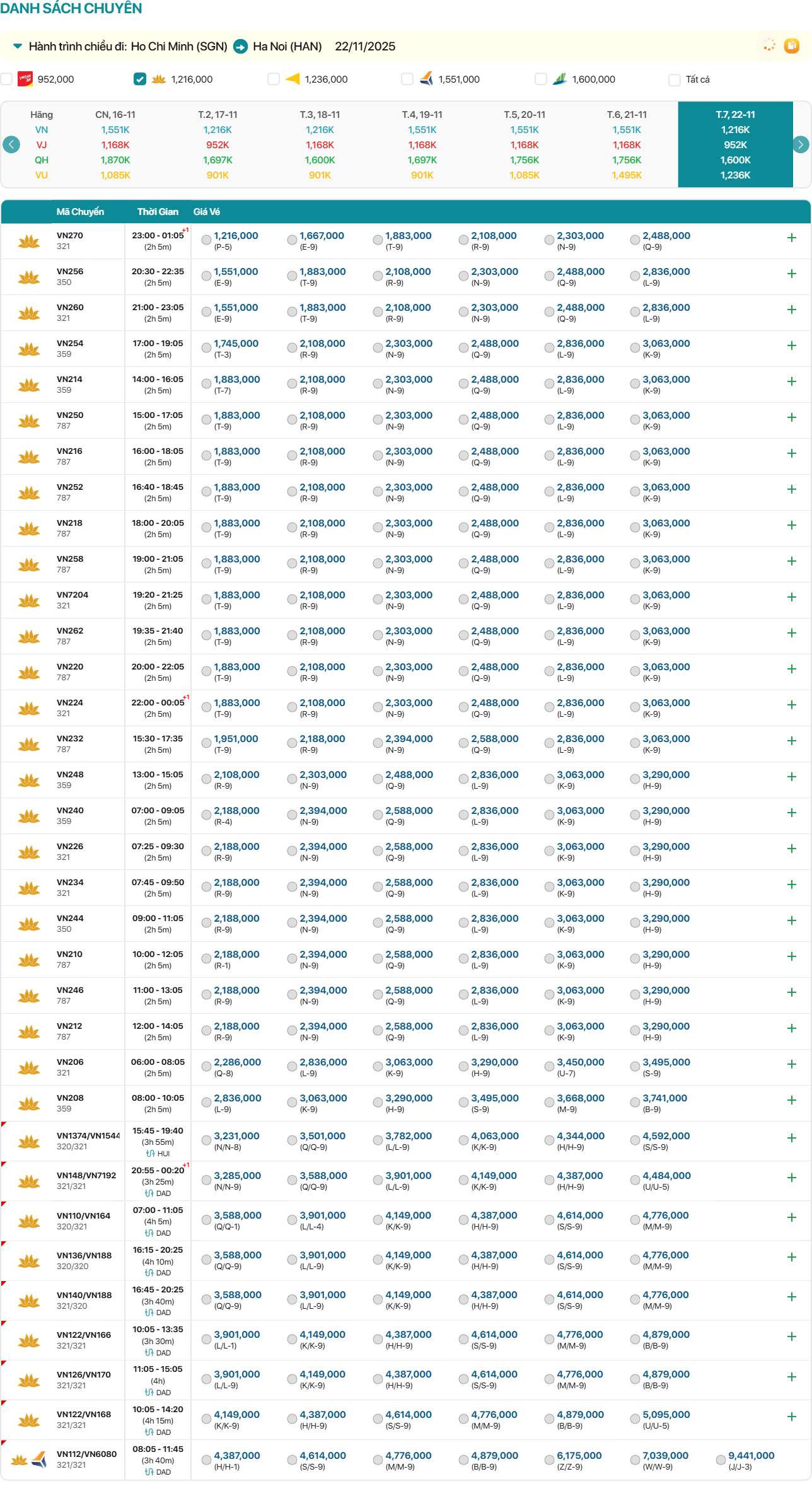 VJ192 17:50-20:00 1,168,000