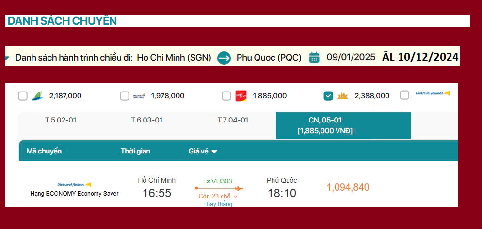 Hồ Chí Minh - Phú Quốc 09/01/2025 ÂL 10/12/2024 phần 1