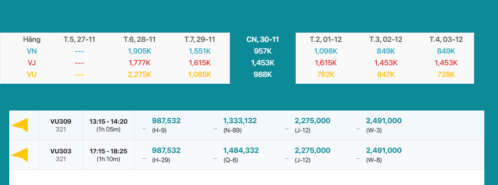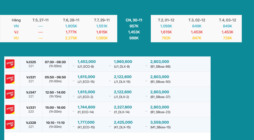 VJ321 05:50-06:50 Vé Máy Bay 1,615,000