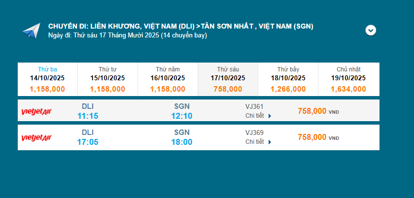 Liên Khương (DLI) - Tân Sơn Nhất (SGN) 17/10/2025