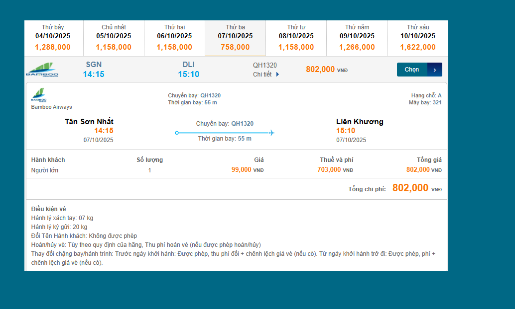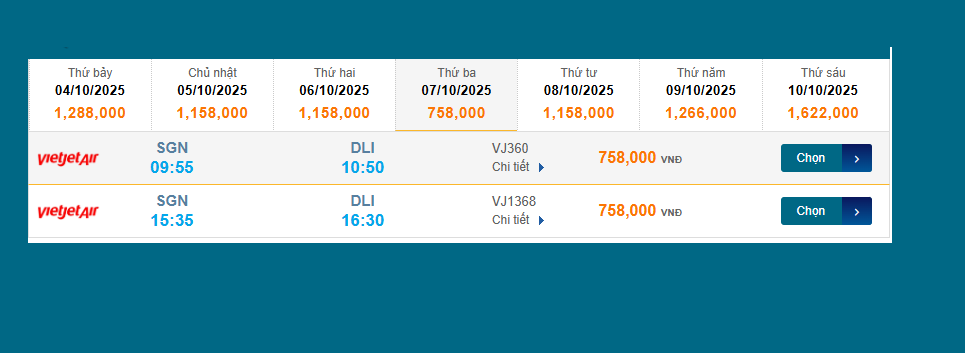 Tân Sơn Nhất (SGN) - Liên Khương (DLI) 07/10/2025