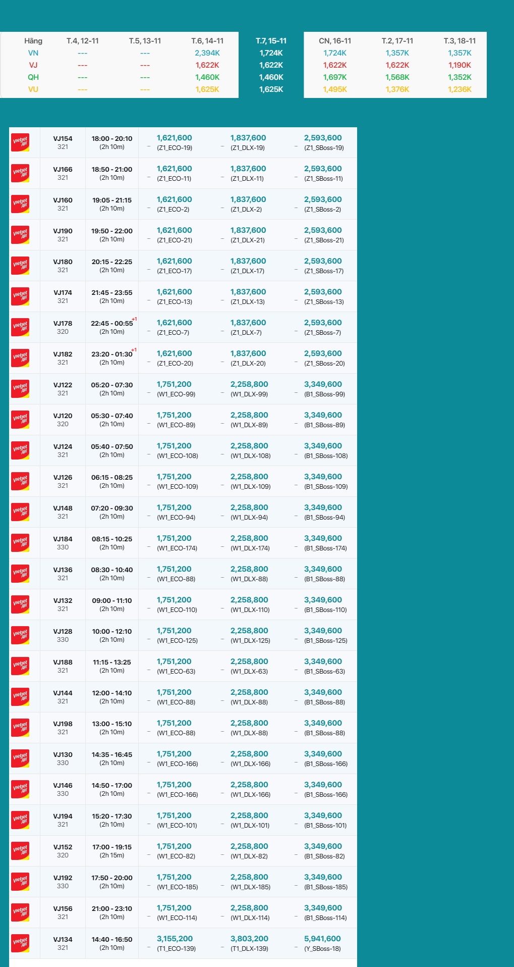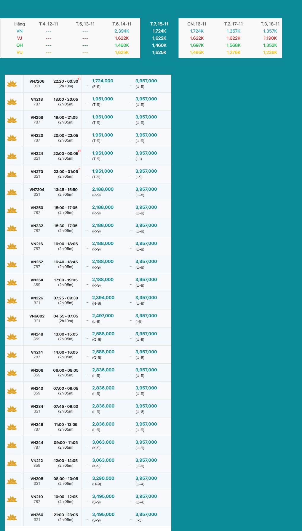 Tân Sơn Nhất (SGN) - Nội Bài (HAN) 15/11/2025