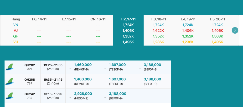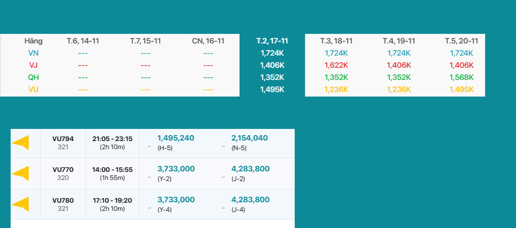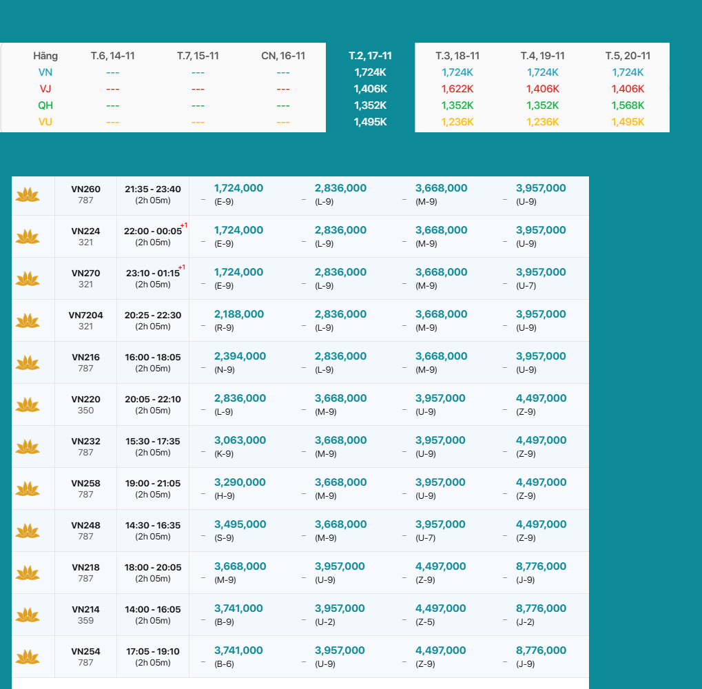 Tân Sơn Nhất (SGN) - Nội Bài (HAN) 17/11/2025