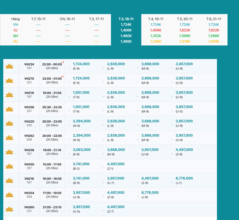 Tân Sơn Nhất (SGN) - Nội Bài(HAN) 18/11/2025