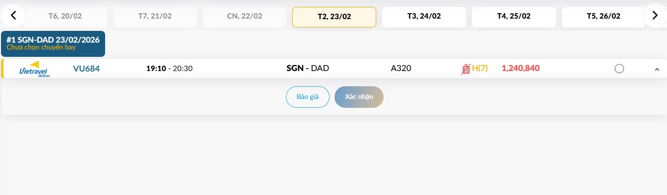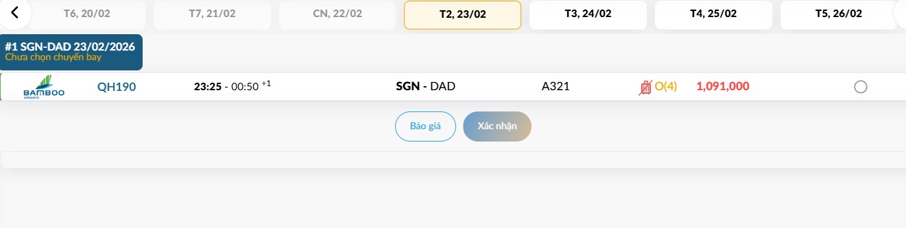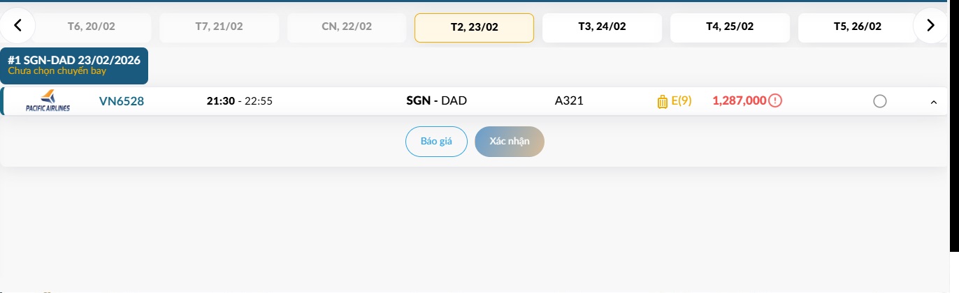 TP. Hồ Chí Minh (SGN) - Đà Nẵng (DAD) Thứ hai 23/02/2026
