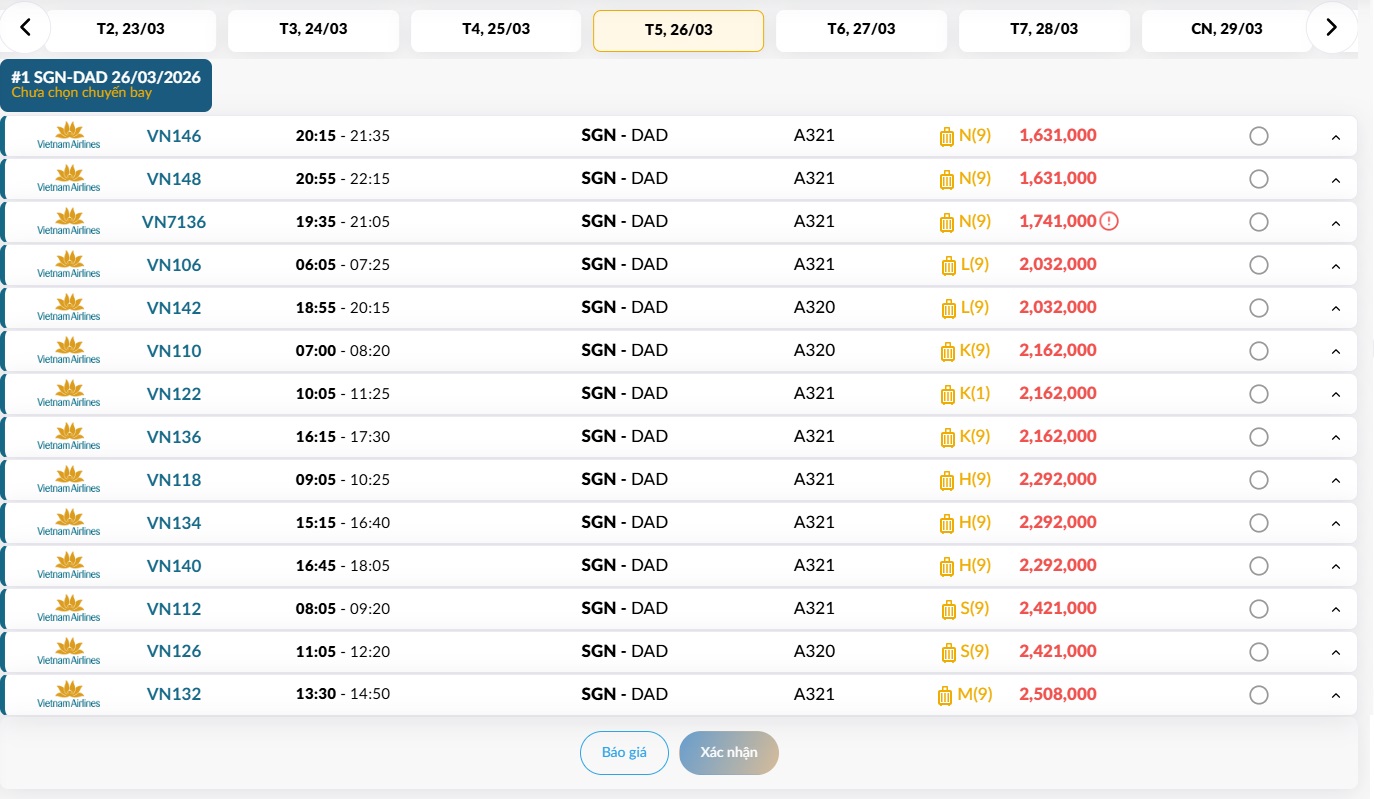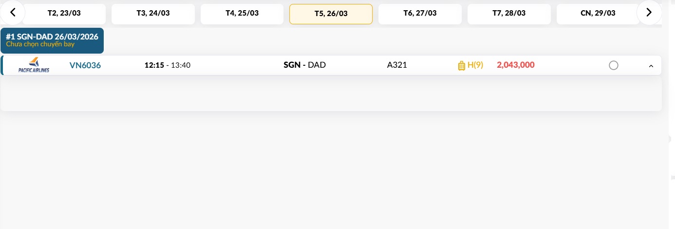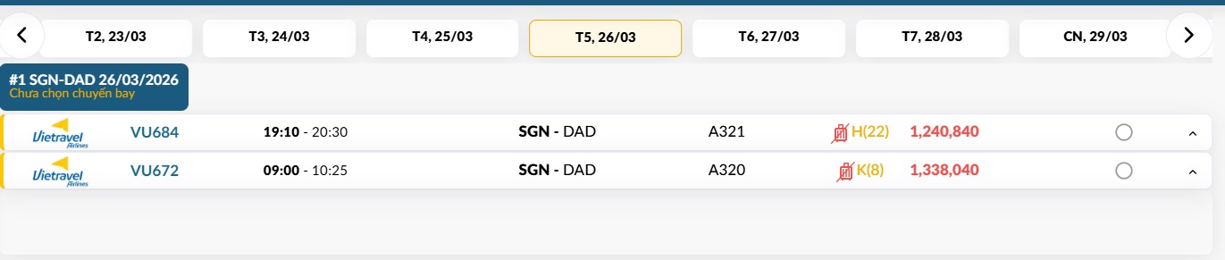 TP. Hồ Chí Minh (SGN) - Đà Nẵng (DAD) Thứ năm 26/03/2026